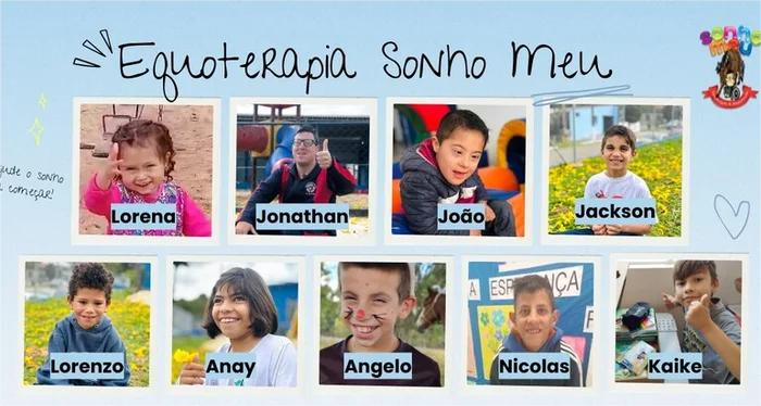 🐴 João Pedro Correia da Silva (7 anos) - Com diagnóstico de Síndrome de Down. João Pedro poderá se beneficiar imensamente da Equoterapia, que contribuirá para seu fortalecimento muscular, equilíbrio e coordenação, além de estimular a comunicação e a independência.